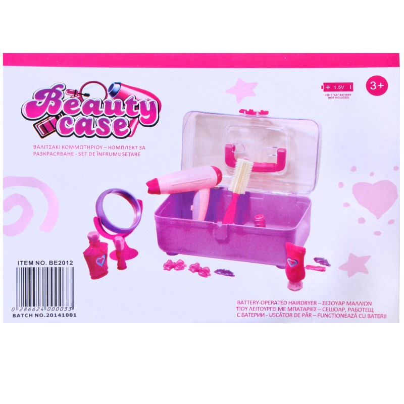 Пълен комплект аксесоари, сред които сешоар, огледало, четка за коса, фиби и много други.