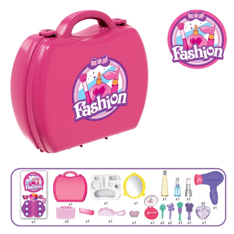 Комплект аксесоари за разкрасяване в удобно цикламено куфарче.
