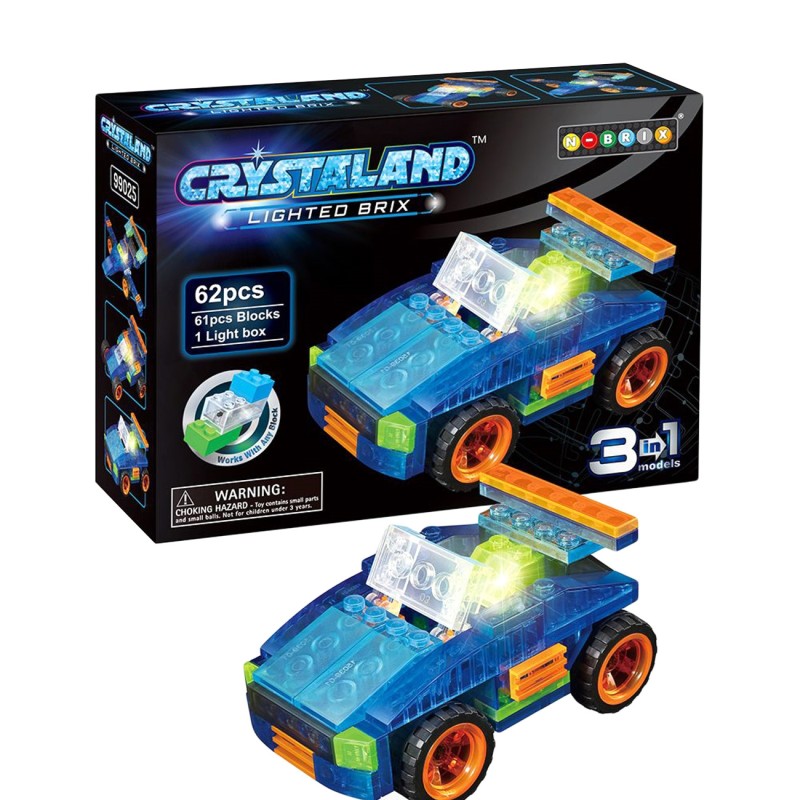 Детски конструктор за сглобяване светещ джип 3 модела в 1, изработен от здрава и безвредна пластмаса в син цвят.