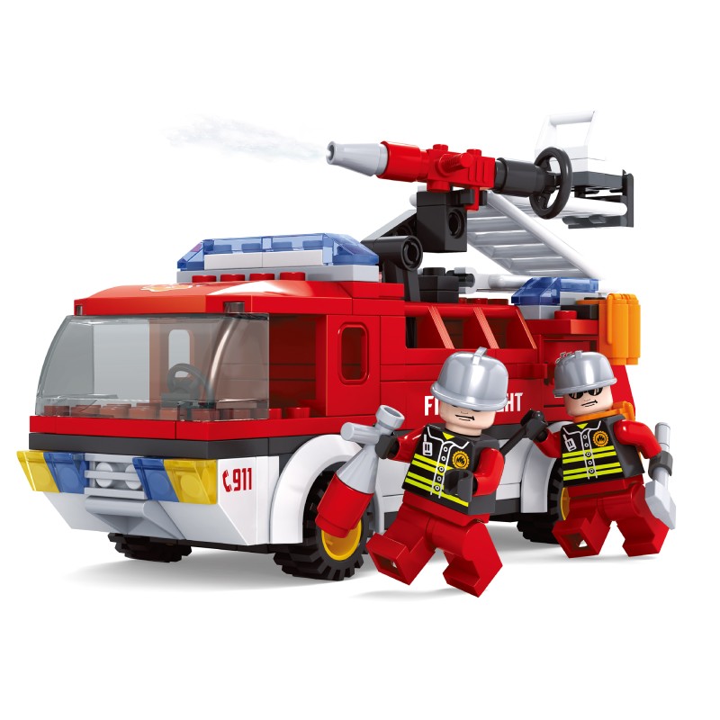 Състоящ се от различни цветни елементи, той ще накара всяко малко момченце да построи реалистична пожарна кола.