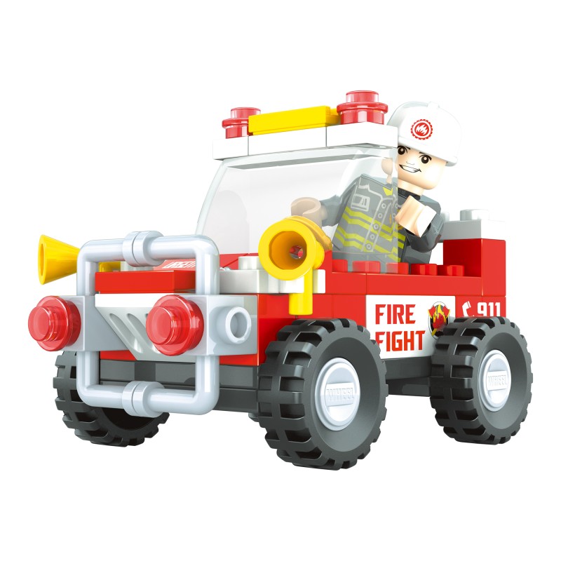Състоящ се от различни цветни елементи, той ще накара всяко малко момченце да построи ефектен пожарникарски джип.