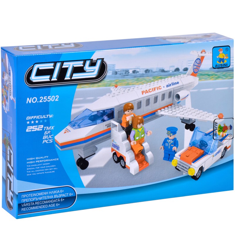 Интересен и занимателен конструктор във формата на летище с кацнал самолет и автомобил, който ще спомогне за развитието на детското въображение.