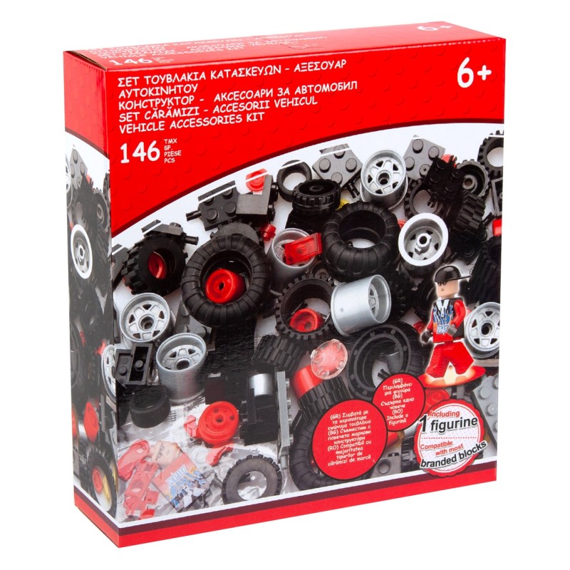 Състоящ се от различни аксесоари за автомобила - гуми, джанти, фарове и др., той е съвместим с повечето марки конструктори.