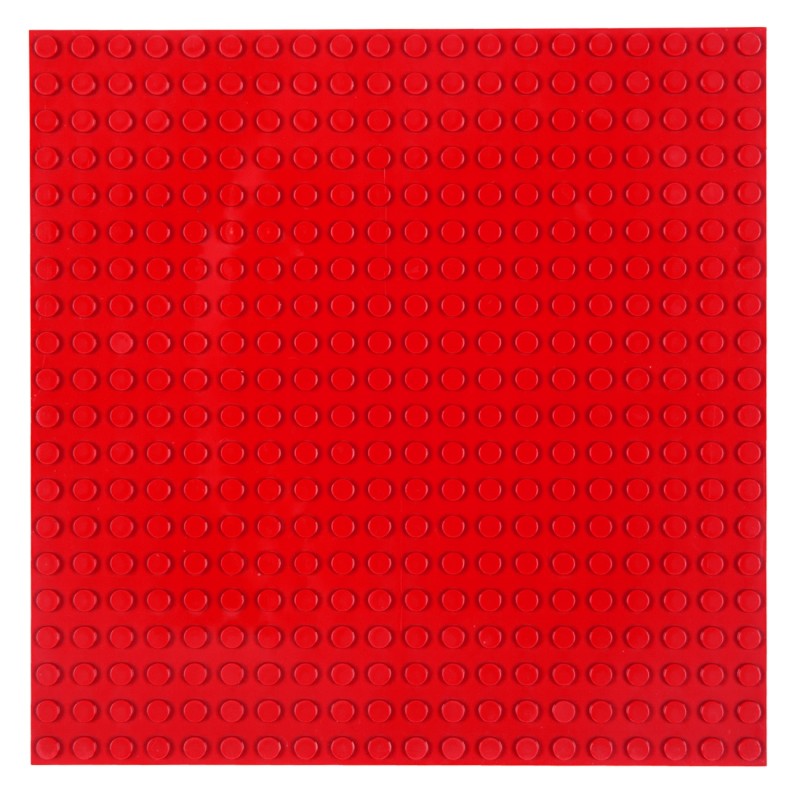 Универсална квадратна основа за детски конструктори, изработена от здрава и безопасна пластмаса в червен цвят.