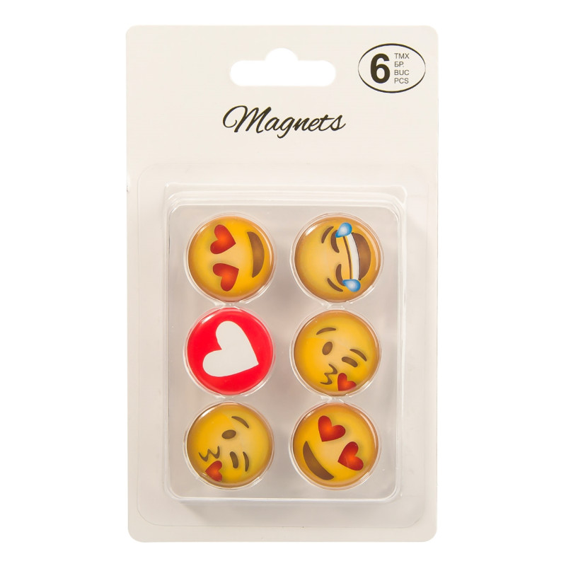 Опаковката съдържа 6 броя магнитчета с усмихнати емотикони.