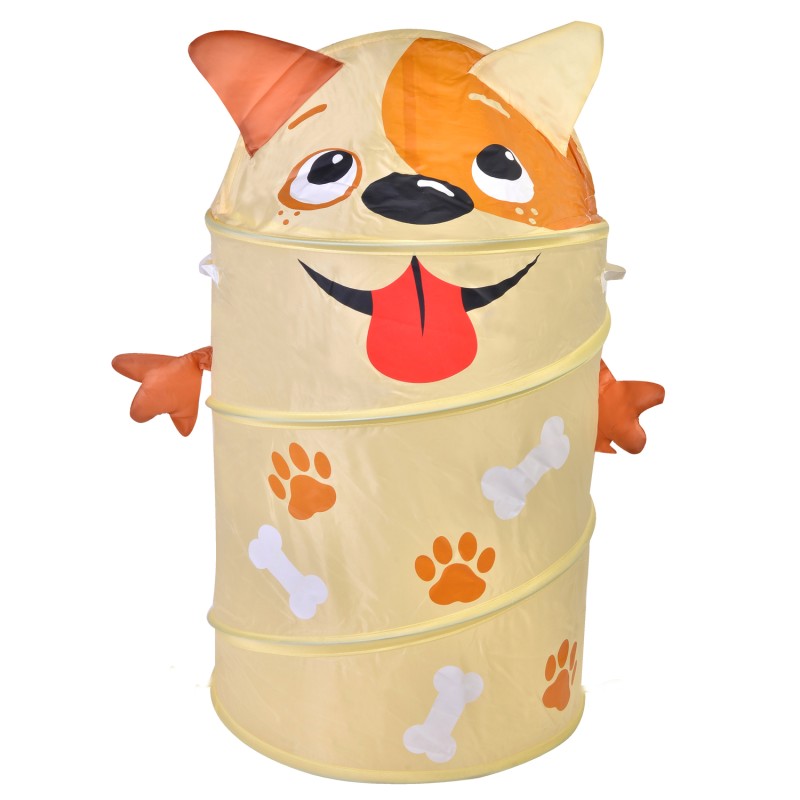Детски сгъваем кош за играчки, дрехи, аксесоари и други в бежов цвят във формата на забавно кученце.