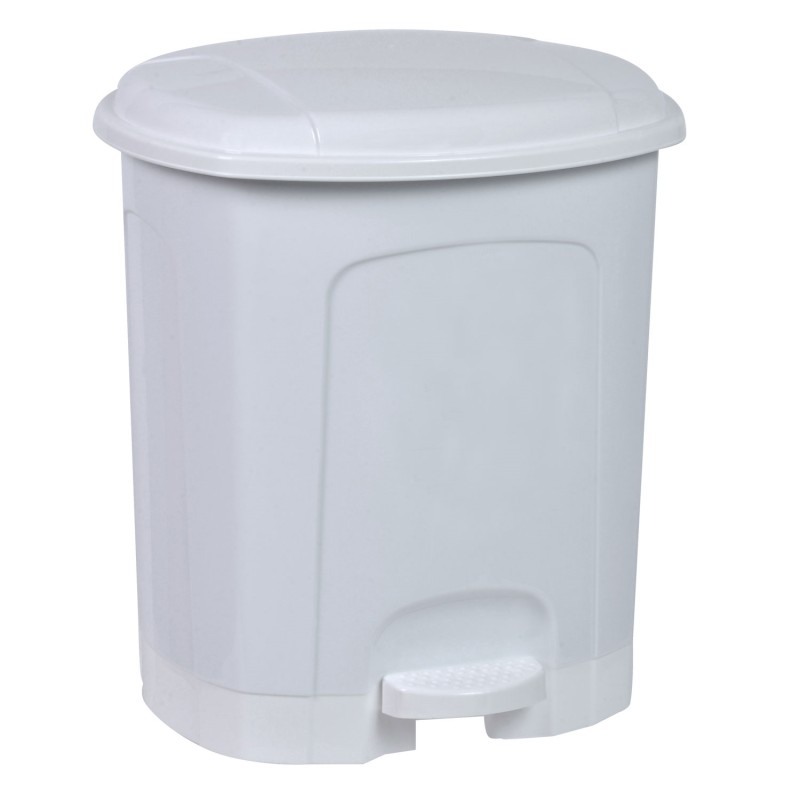 Кош за отпадъци с капак, изработен от олекотена и здрава пластмаса в бял цвят.