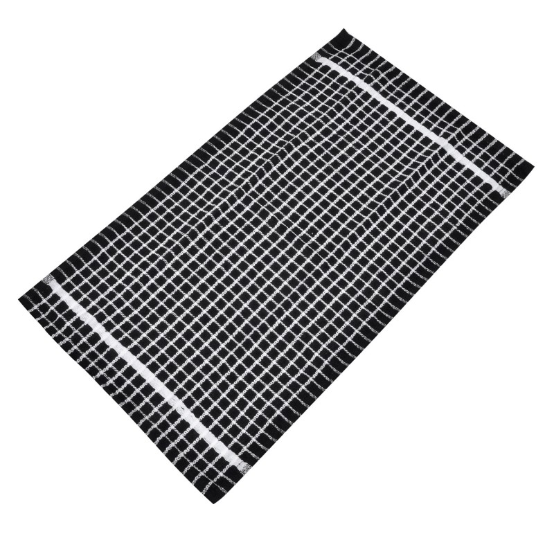 Кухненска кърпа в черен цвят с бяло каре, изработена от висококачествена, мека, плътна нишка с висока абсорбираща способност.
