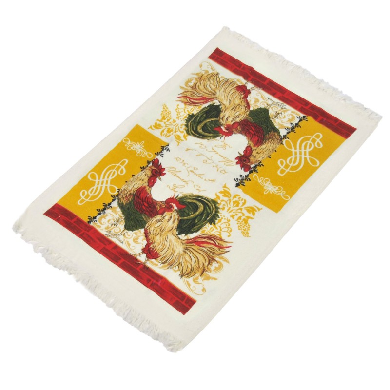Кухненска кърпа със забавна щампа на петли, изработена от висококачествен памук, което гарантира нейната постоянна мекота и лесна поддръжка.