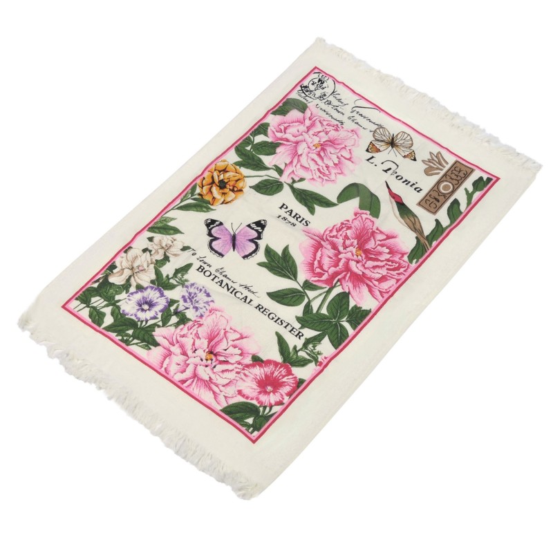 Кухненска кърпа с красива щампа на цветя и пеперуди, изработена от висококачествен памук, което гарантира нейната постоянна мекота и лесна поддръжка.