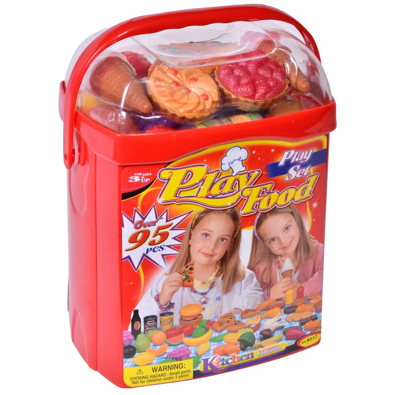Детско куфарче с различни ястия и хранителни продукти с реалистичен дизайн, изработени от здрава и безвредна пластмаса.