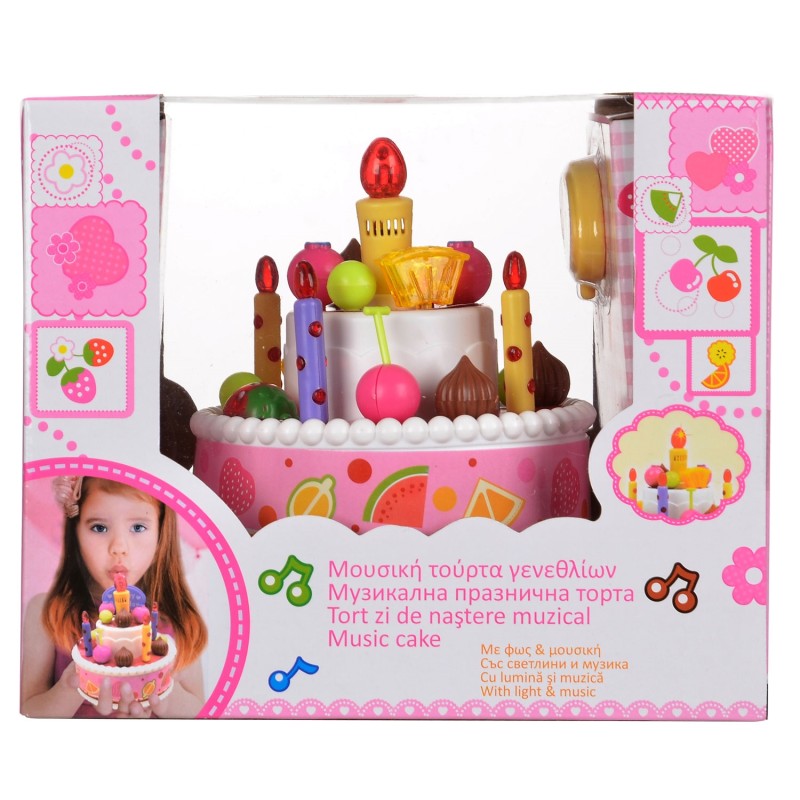 Детска музикална торта за рожден ден с пластмасови свещички, които светят.