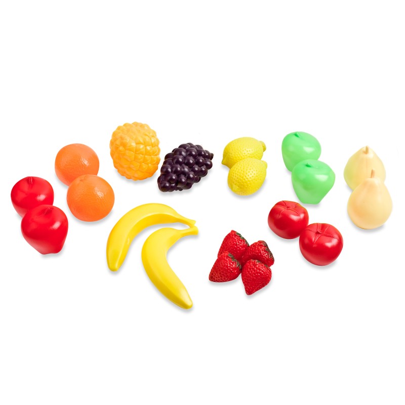 Детски комплект с различни плодове - ябълки, портокали, ананас, грозде, лимони, круши, ягоди и банани.
