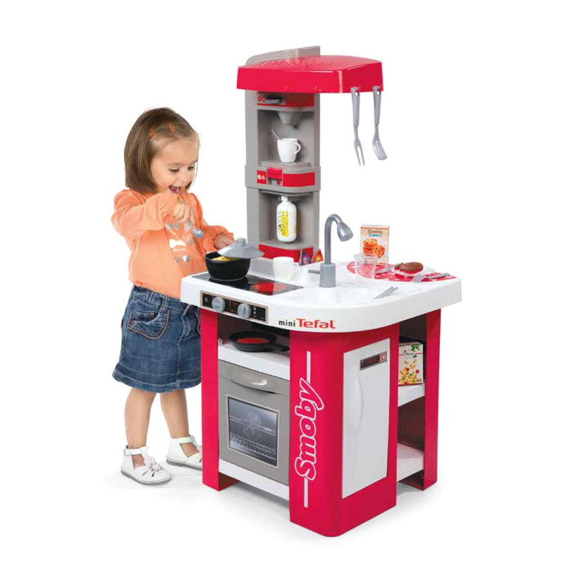 Детска кухня TEFAL със звук и светлини - фурна и мивка + 26 аксесоара - кафемашина, фризер, съдомиялна, котлони, тенджери, тигани, ножове, лъжици, вилици, шпатули, хранителни продукти и други.