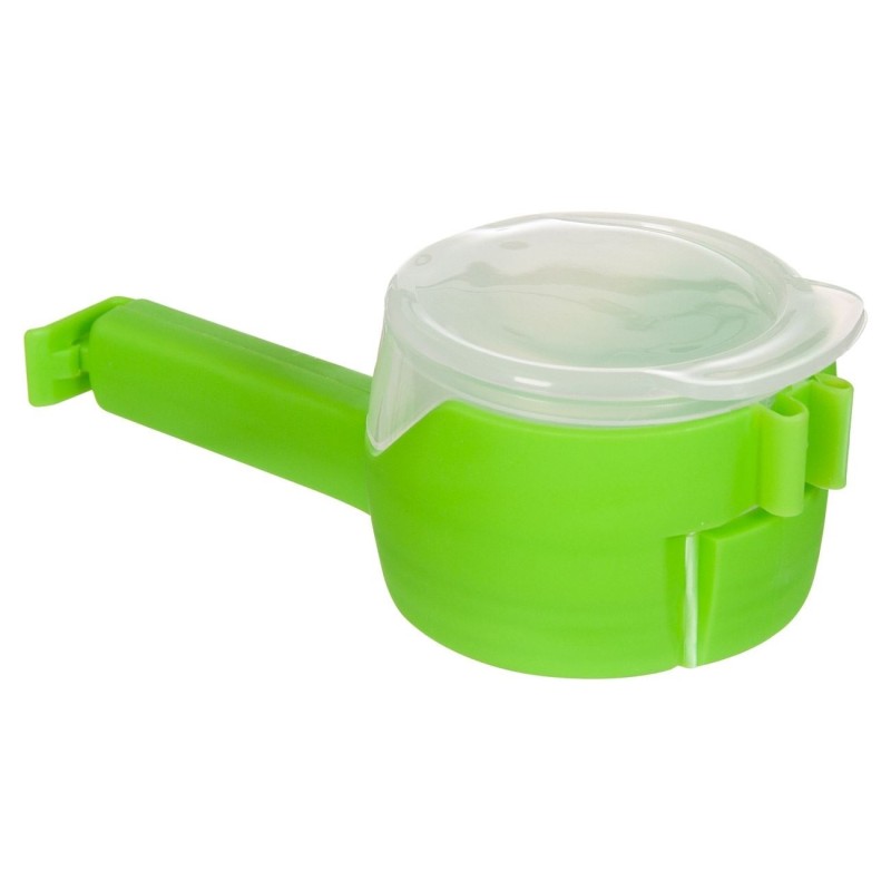Щипка с дозатор, който се прикрепя към плика и осигурява плавно и безопасно изпразване на съдържанието без разсипване.