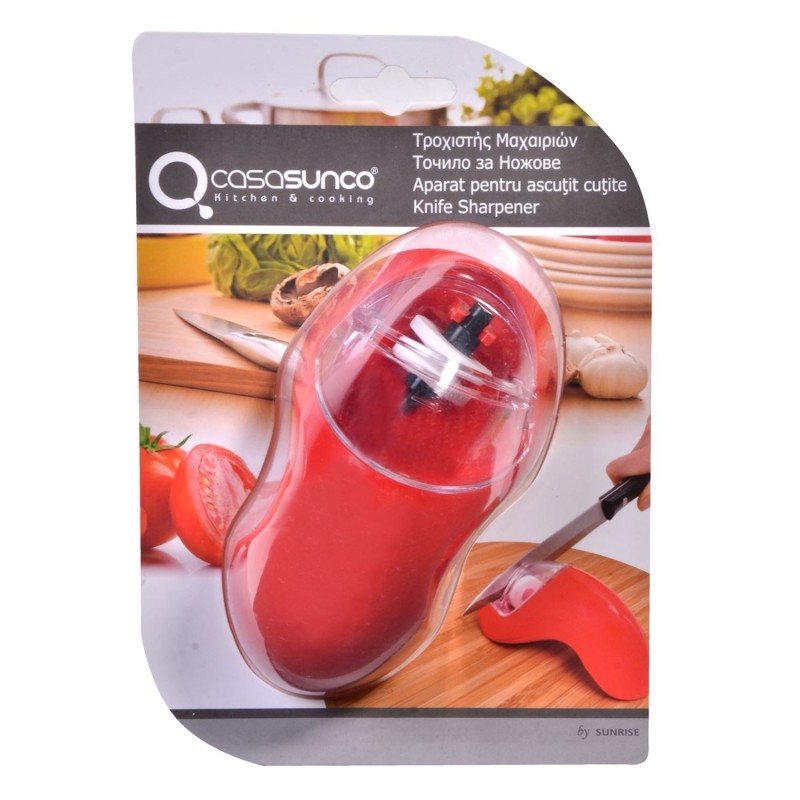 Пластмасово точило за фино заточване и приглаждане на всички видове ножове и режещи инструменти, изработено от висококачествена пластмаса в червен цвят.