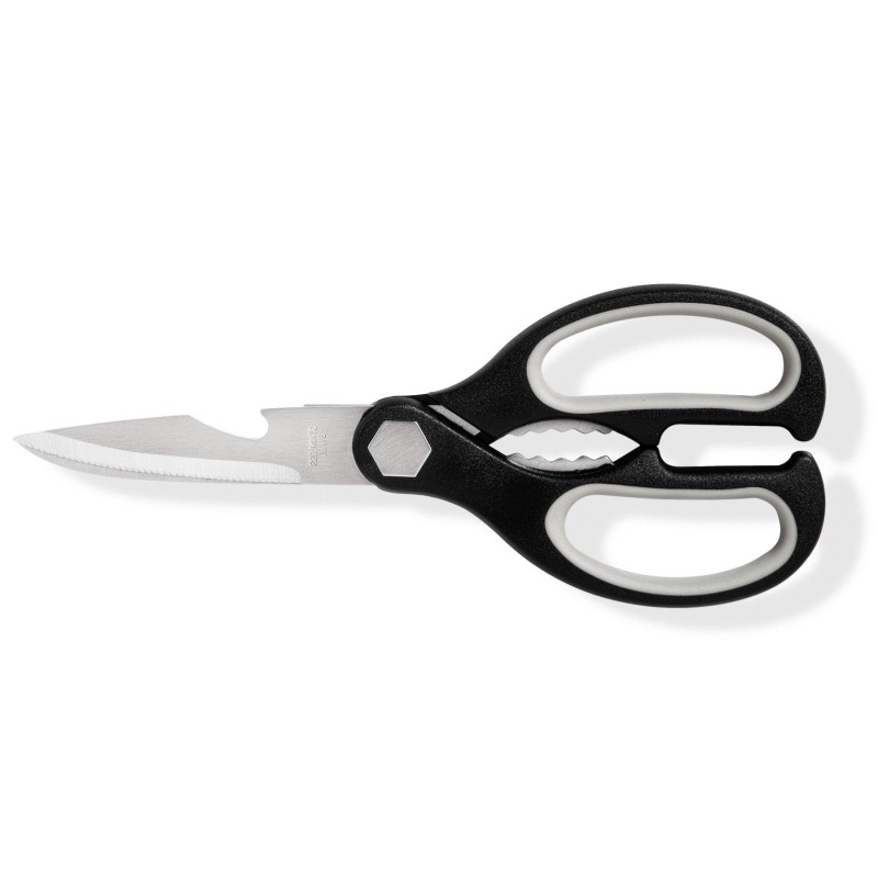 Универсална кухненска ножица за рязане на месо и зеленчуци, изработена от неръждаема стомана с ергономични дръжки от висококачествена пластмаса.