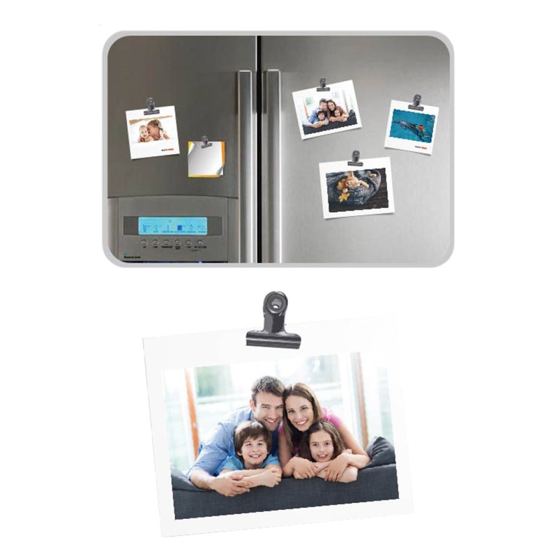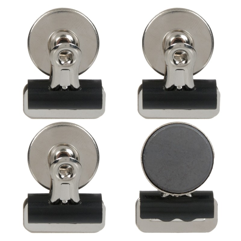 Комплект от 4 броя практични метални щипки с магнит за лесно прикрепяне към хладилника или всякаква друга метална повърхност.