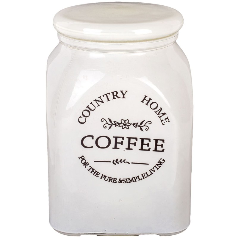 Порцеланов буркан за съхранение на кафе в бял цвят с практичен капак, осигуряващ плътно затваряне.