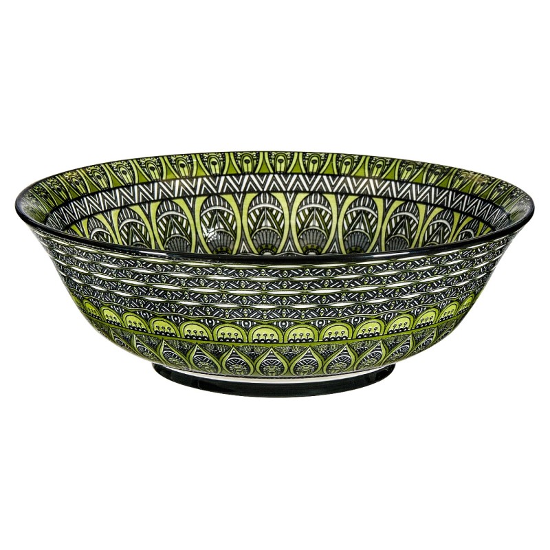 Купа за салата, изработена от висококачествена керамика със стилизирани флорални орнаменти в зелени нюанси отвън и отвътре.