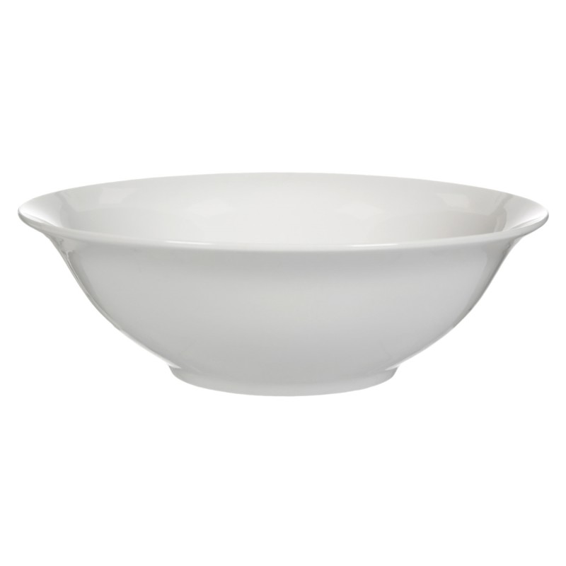 Класическа кръгла салатиера, изработена от висококачествен порцелан в бял цвят.