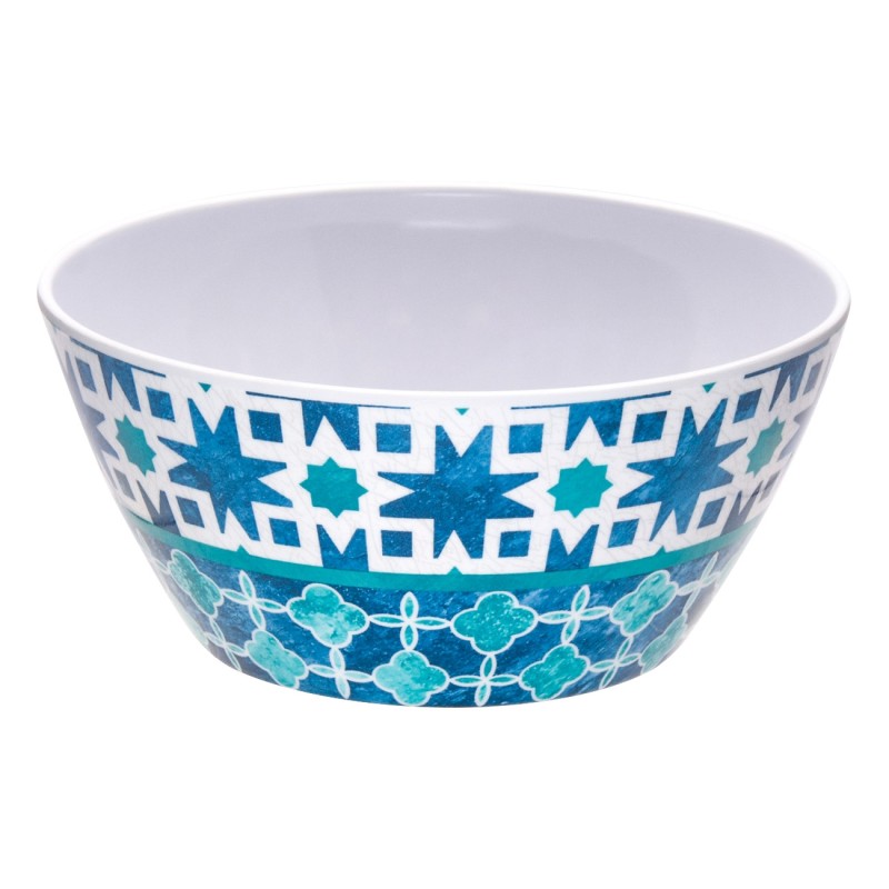Голяма купа за хранене и сервиране, изработена от меламин в светло син цвят с цветна щампа на звезди.