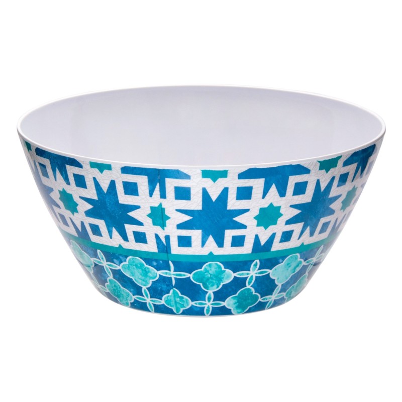 Практична и удобна купа за хранене и сервиране, изработена от меламин в светло син цвят с цветна щампа на звезди.