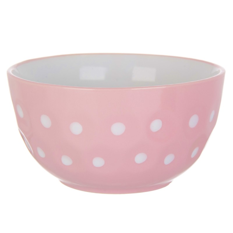 Универсална купа за сервиране, изработена от висококачествена керамика в розов цвят на бели точки.