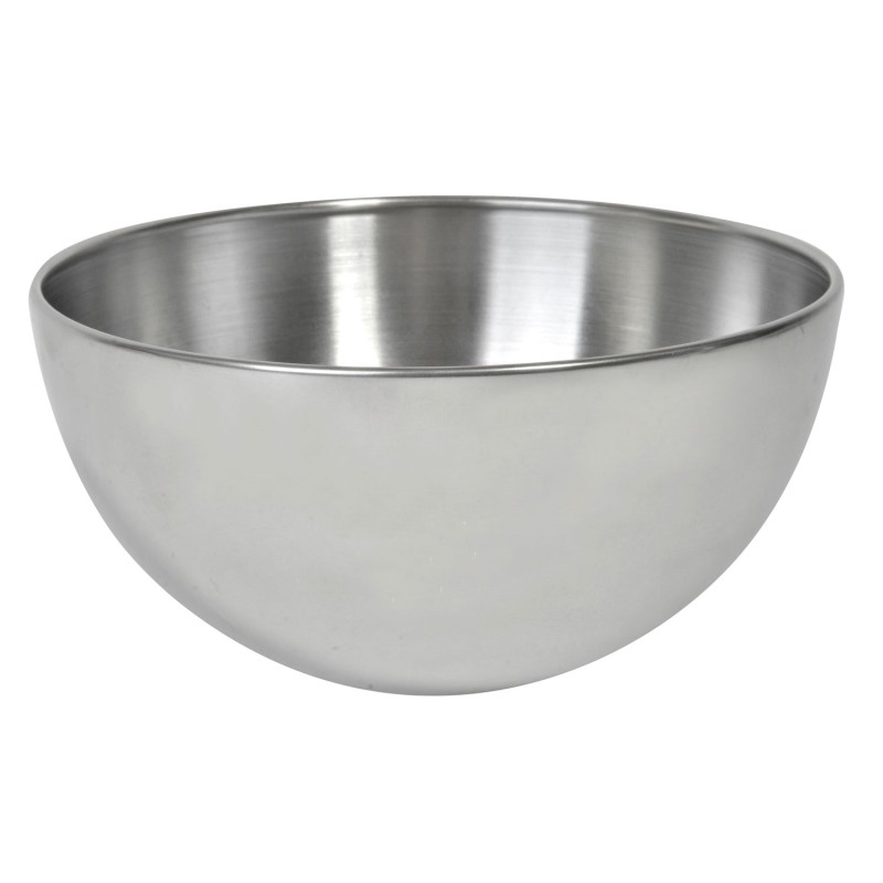 Овална купа, изработена от висококачествена неръждаема стомана в цвят инокс с матирана външна страна.