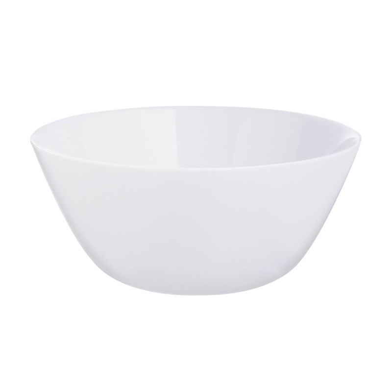 Дълбока купа за салата, изработена от аркопал в бял цвят.