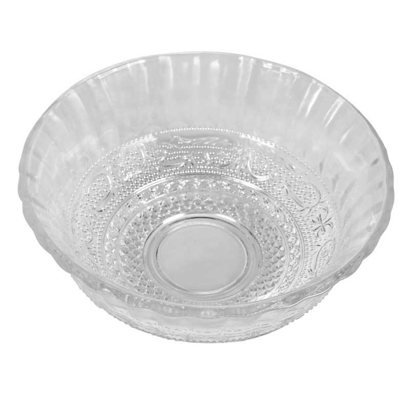 Купа за салата, изработена от висококачествено прозрачно стъкло с красиви релефни орнаменти.