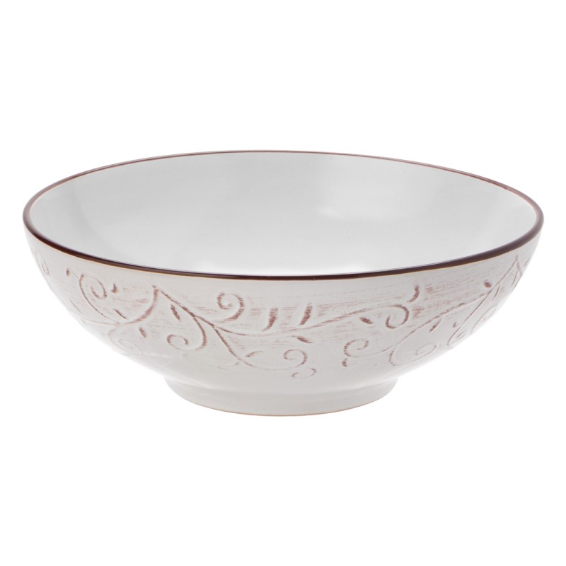 Удобна и практична салатиера, изработена от висококачествена керамика в бял цвят с релефни флорални шарки.