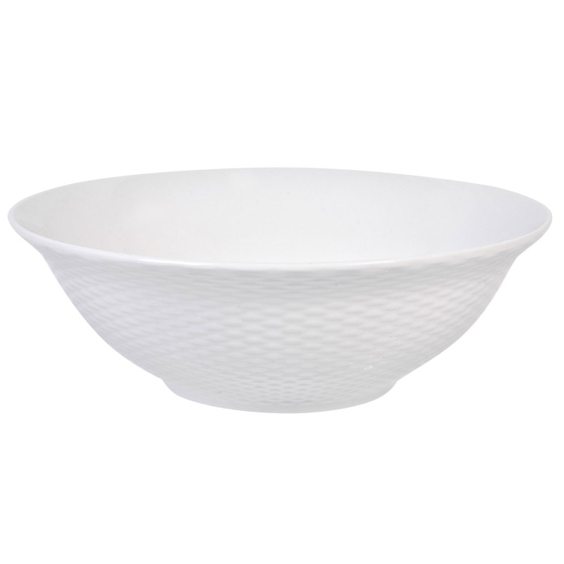 Голяма и практична салатиера, изработена от висококачествен порцелан в бял цвят с релефна външна страна.
