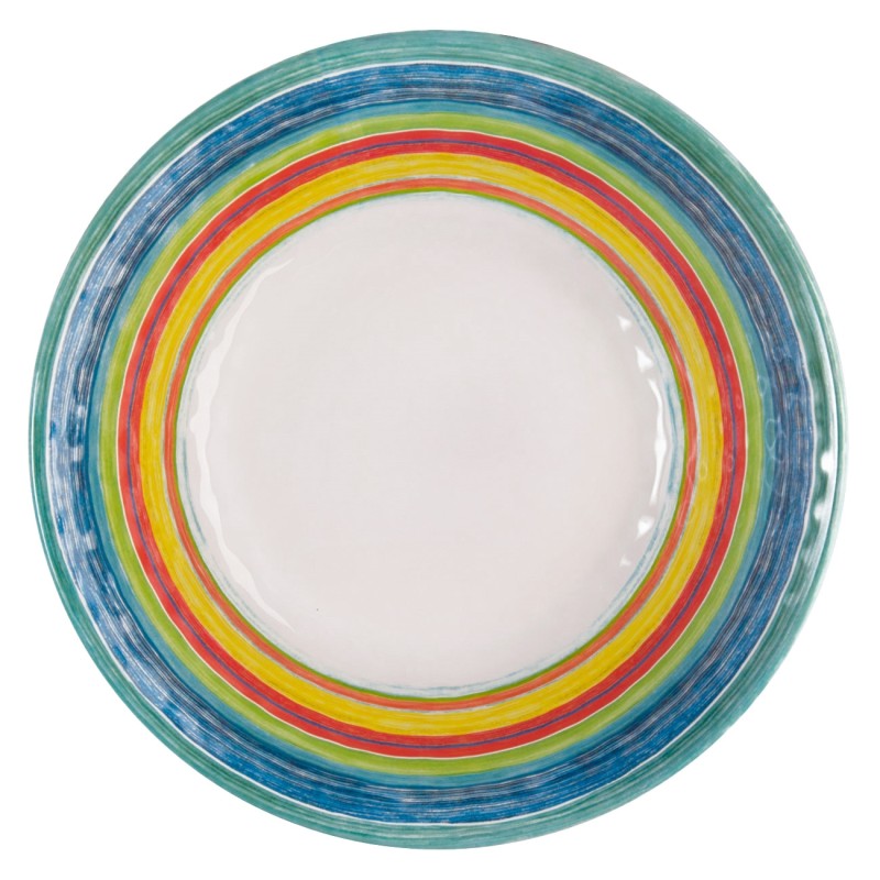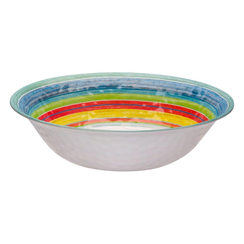 Дълбока купа за хранене и сервиране, изработена от меламин в бял цвят с многоцветна вътрешност.