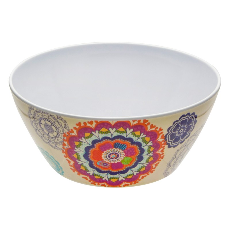 Универсална купа за хранене и сервиране, изработена от меламин с многоцветна щампа на цветя.
