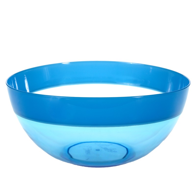 Универсална купа за хранене и сервиране, изработена от здрава и устойчива полупрозрачна пластмаса в светло син цвят.