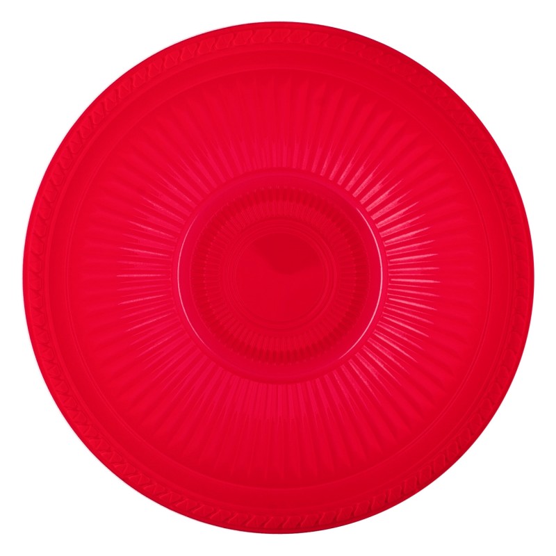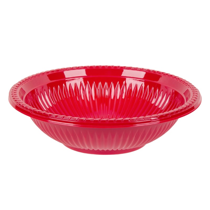 Комплект от 2 броя големи салатиери за еднократна употреба с кръгла форма, изработени от пластмаса в червен цвят.