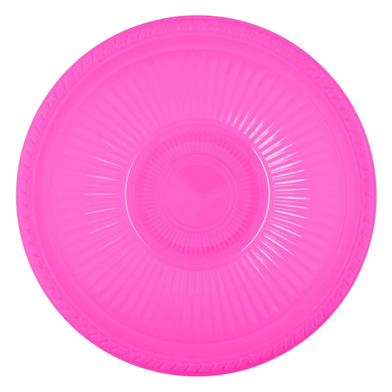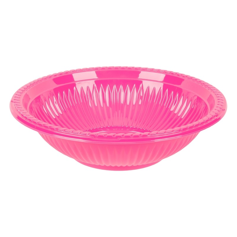 Комплект от 2 броя универсални салатиери за еднократна употреба с кръгла форма, изработени от пластмаса в цикламен цвят.