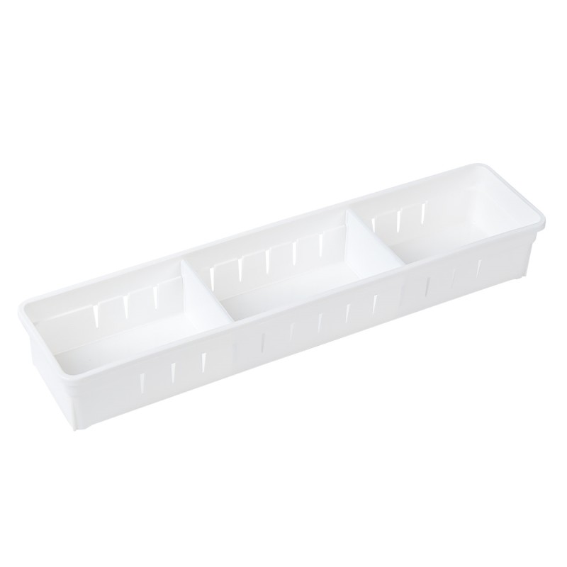 Практична кутия-органайзер за съхранение с 3 отделения, изработена от здрава и устойчива пластмаса в бял цвят.