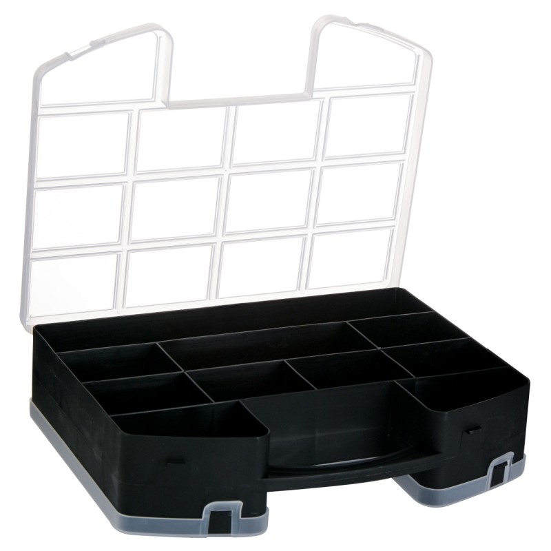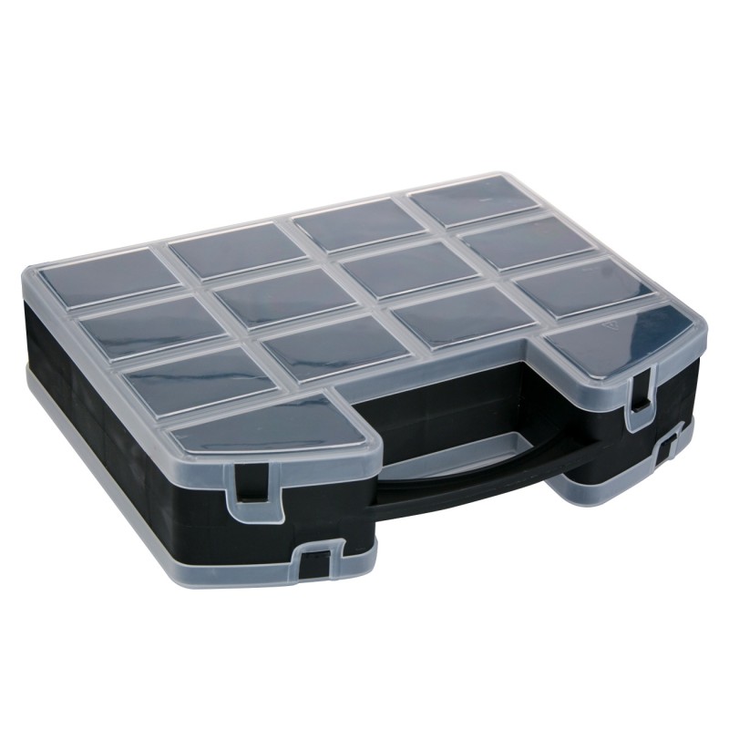 Двустранна кутия-органайзер с 28 отделения за съхранение на дребни инструменти, която се отваря автоматично от всяка страна.