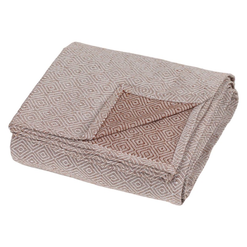 Бежово декоративно хвърляне с релефен дизайн на ромб. Покрива триместен диван. Идеално за всеки сезон.