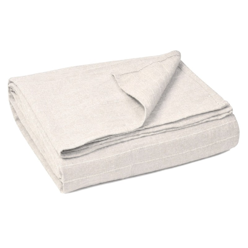 Декоративна покривка за диван, канапе, легло и др. в цвят екрю с дискретно райе.