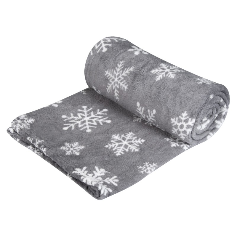 Декоративна кувертюра за диван, канапе, легло и др. в сив цвят с красив принт на снежинки.