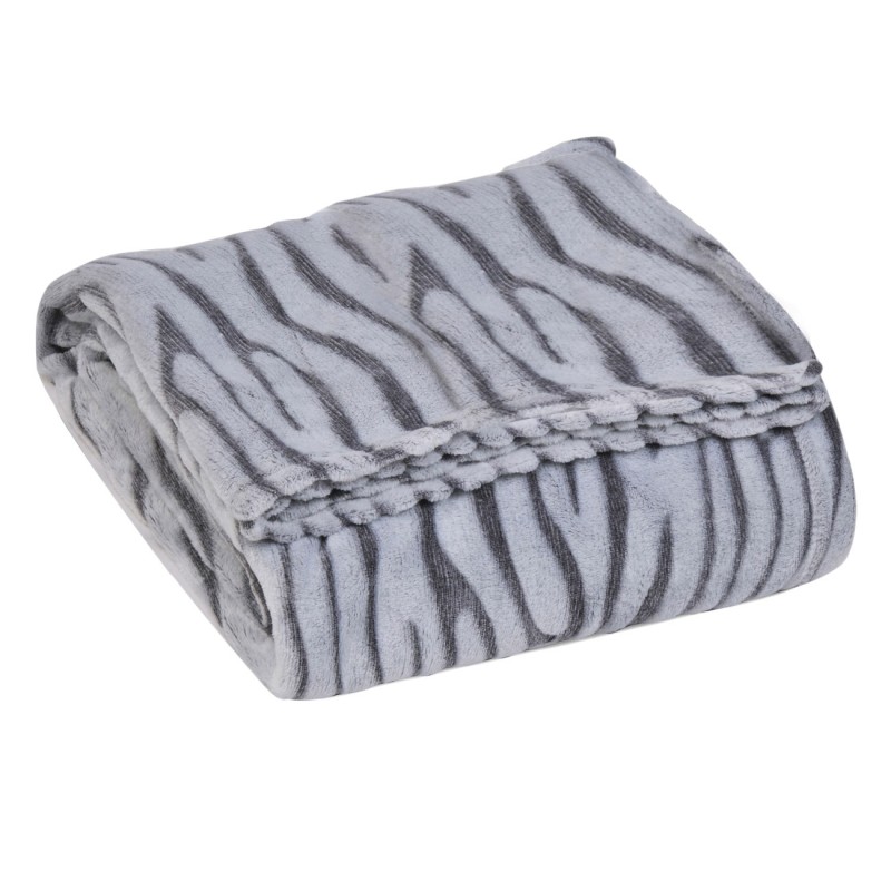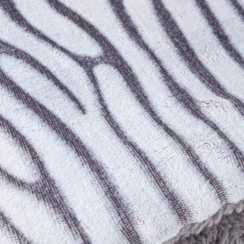Декоративна покривка за диван, канапе, легло и др. в сив цвят със зеброви шарки и топла страна, изработена от висококачествен материал шепра.