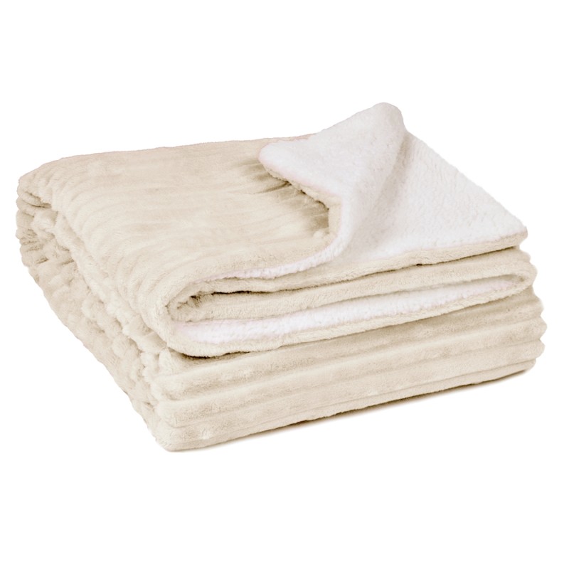 Декоративна покривка за диван, канапе, легло и др. с две лица - релефно райе в екрю и бяла, наподобяващо вълна.