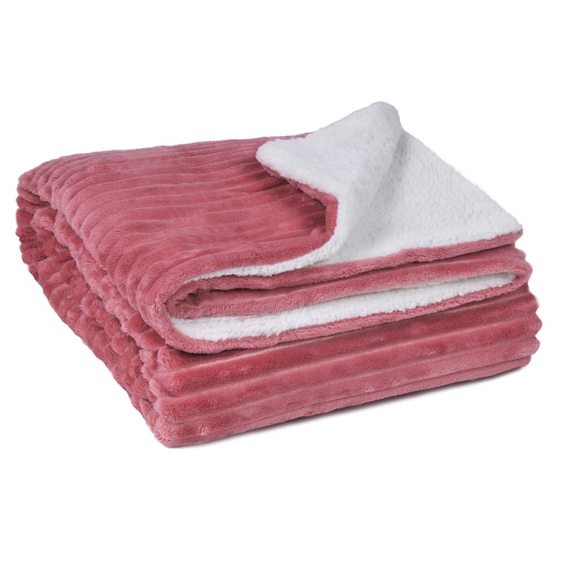 Декоративна покривка за диван, канапе, легло и др. с две лица - релефно райе в цвят пепел от рози и бяла, наподобяващо вълна.