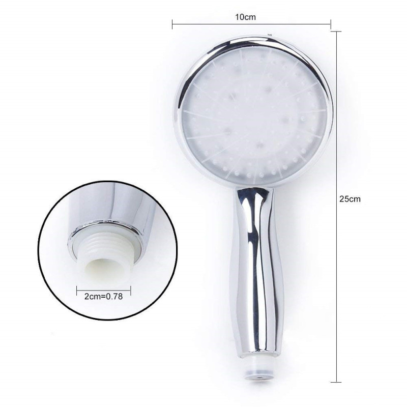 Универсалният светещ душ има следните размери: диаметър на главата - 10см, дебелина на главата - 3.5см и дължина на дръжката - 15.5см. Той е лесен за инсталиране и ще придаде стил и функционалност на вашата баня.
