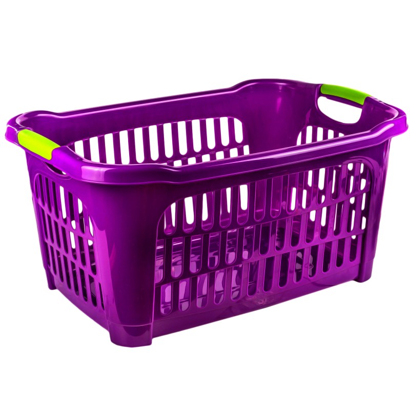 Практичен панер за дрехи за пране с ергономични противоплъзгащи дръжки, изработен от качествена пластмаса в лилав цвят.