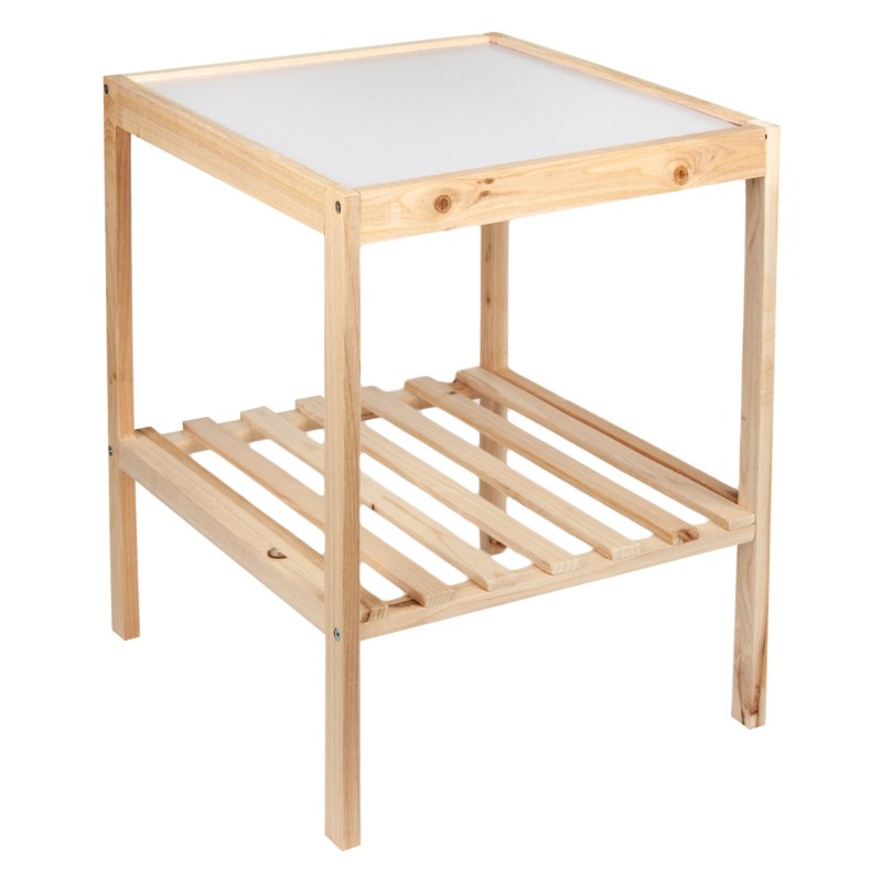 Функционална помощна масичка на две нива, изработена от дърво в естествен цвят.