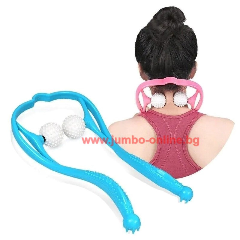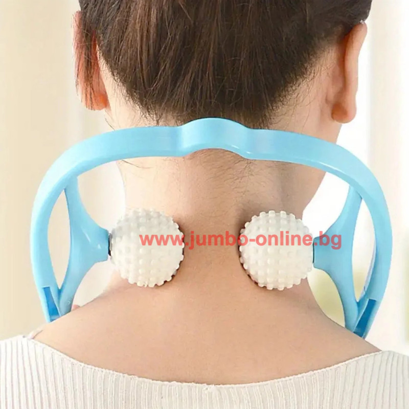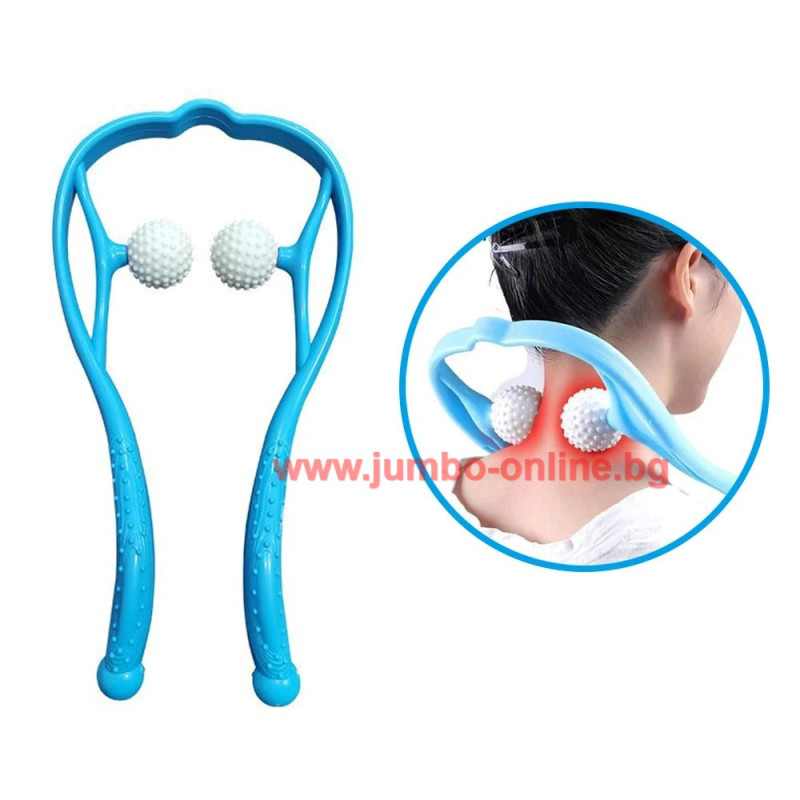 Ръчен масажор за врат с два кръгли и меки накрайника от двете страни, разположени така, че да обхванат врата и да масажират мускулите до пълно отпускане. Облекчава напрежението, умората, сковаността и болката във врата. Уредът облекчава стреса, подобрява кръвообращението и с него може да се контролират темпото, посоката и интензивността на масажа.